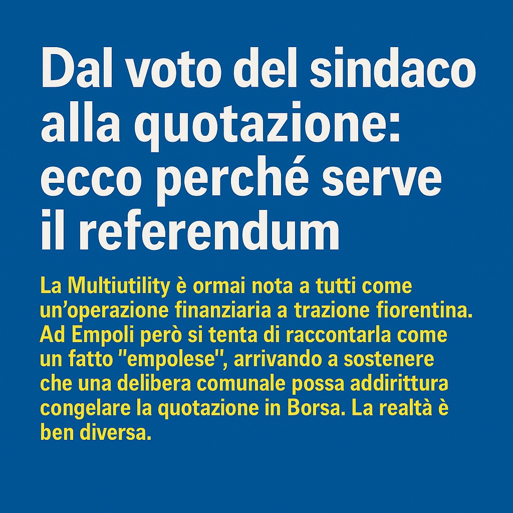 Il referendum non è dunque un dettaglio procedurale, ma l’unica possibilità per Empoli di non restare prigioniera di questo modello, restituendo alla città la facoltà di decidere come gestire i propri servizi pubblici essenziali.